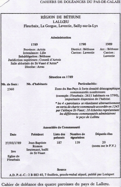 Laventie - cahiers de doléances - députés 1789