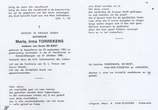 TORREKENS JUlia était l'épouse d'un monsieur COSYNS (mon père ne se rappelle plus le prénom.)